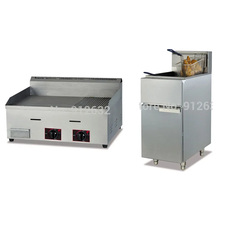 Stainless steel Gas griddle Grill machine Grill food machine GH-722 + GF-2G 30L/Tank gas fryer